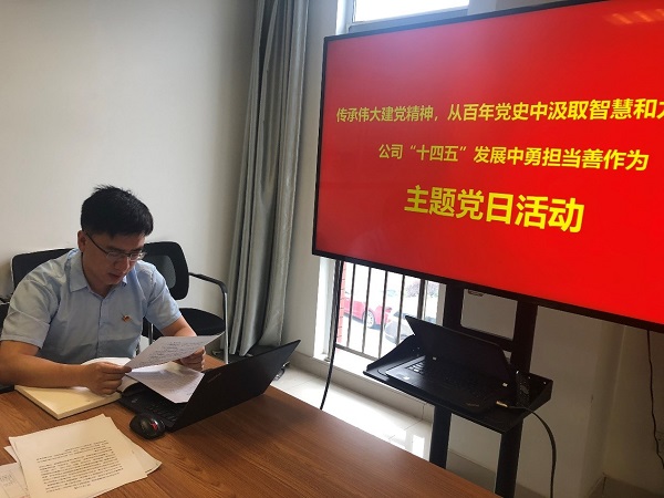 黨支部書記劉新分享了學習習近平新時代中國特色社會主義思想及建黨100周年習總書記總要講話精神心得,提醒大家一定要堅持共產黨的領導,以史為鑒、開創(chuàng)未來,重視學習和總結歷史,并結合長江院“十四五”規(guī)劃綱要,給各個部門提出了“十四五”期間的重點攻堅任務,號召大家要從黨的建設過程中吸取經驗教訓。